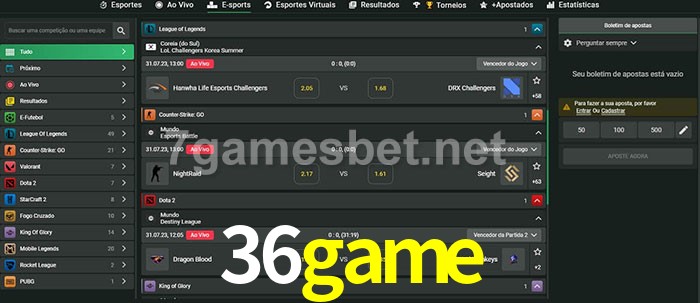 O 36game oferece uma grande seleção de opções de apostas em e-sports com probabilidades competitivas